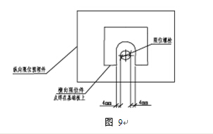模式2:打開秤臺端蓋,按圖11的限位示意,將U型橫向限位件焊接在預(yù)埋件上,并使限位螺栓頭部與U型件側(cè)面間隙保持在4mm之內(nèi),然后鎖緊螺母。