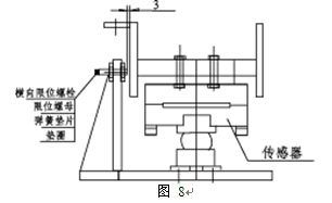 在秤臺的端蓋位置,按圖7的限位示意,調(diào)整限位螺栓頭部與預(yù)埋件側(cè)面間隙保持在3mm之內(nèi),然后鎖緊螺母。