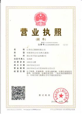 江蘇長江衡器營業(yè)執(zhí)照